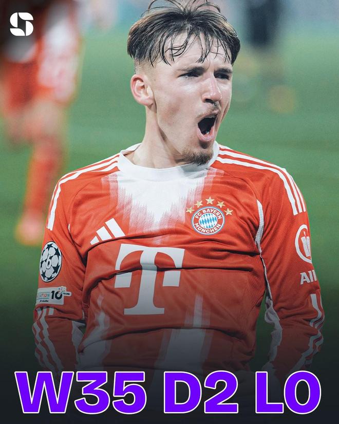据统计,此役过后,拜仁在欧冠小组/联赛阶段的主场不败场次延续到37场,德甲豪门取得35胜2平的优异战绩。上一次输掉此类比赛追溯到2013年12月,当时拜仁2-3不敌曼城。
